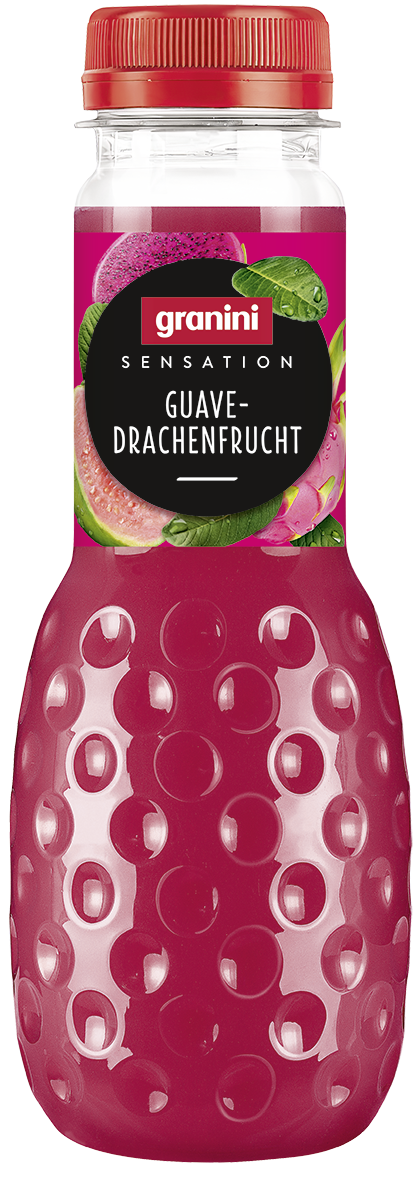 Geniessen Sie jeden Schluck der exquisiten Komposition dieses granini Sensation Safts, der die Süsse der Guave mit der Exotik der Drachenfrucht verbindet.